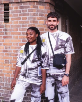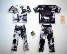 The VERENIGD NOORD SUIT (2021) is a handmade outfit featuring pictures of all neighborhoods in the northern district of Amsterdam Noord. 'Noord' is a complex and often excluded part of the city that suffers from significant segregation and gentrification. The idea behind the suit was to ensure that everyone from the district feels represented, as they can at least recognize their home in the images. The suit also features five hand-colored patches depicting typical elements that the district is known for. Verenigd Noord has also operated as a tailoring workshop in the community center, DE RIETWIJKER. The workshop was aimed at young people (aged 16-29) from all neighborhoods of Amsterdam Noord. It focused on making and designing a unique version of the suit. By adding their own photos and altering the colors of the prints, the participants were able to express their local perspectives. Since all neighborhoods of the district were represented by the participants, together, they formed an inclusive portrait of the district. A presentation of this was held in De Rietwijker as part of the opening of the exhibition Welkom In De Noordside at the AMSTERDAM MUSEUM.